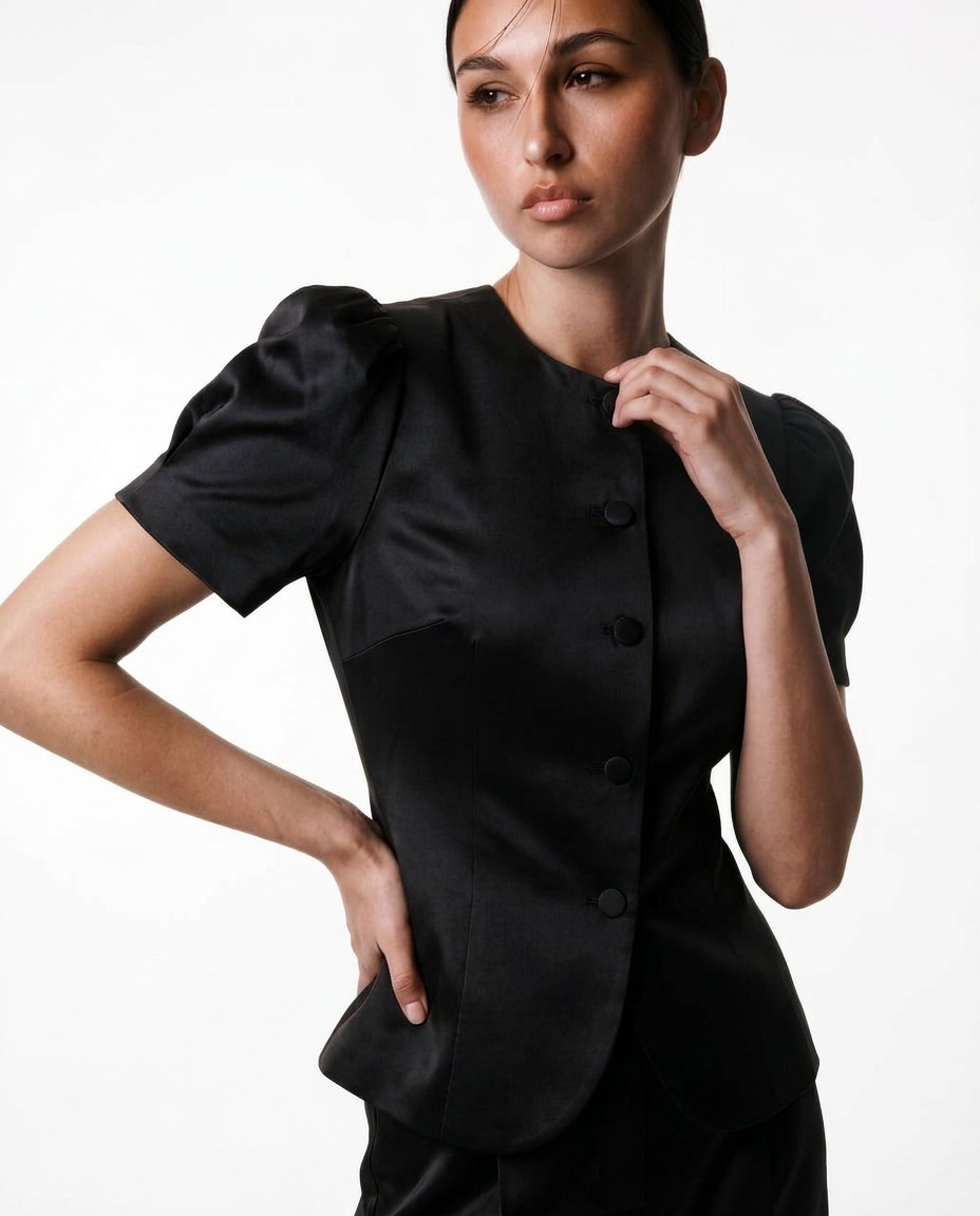 Alisa Fitted Silk Top – black