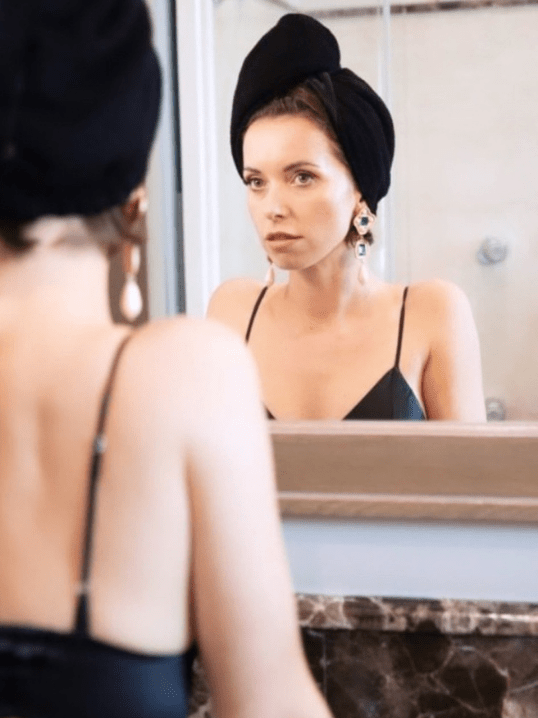 Double-sided silk turban – on one side smoothing silk, and on the other antibacterial, moisture-absorbing bamboo fabric. This is a towel that will not cause mechanical damage to the hair, it will have a beneficial effect on its condition and appearance. Bamboo fabric absorbs excess moisture from the hair in a few minutes, and silk will make sure that your hair is smooth, soft and shiny.