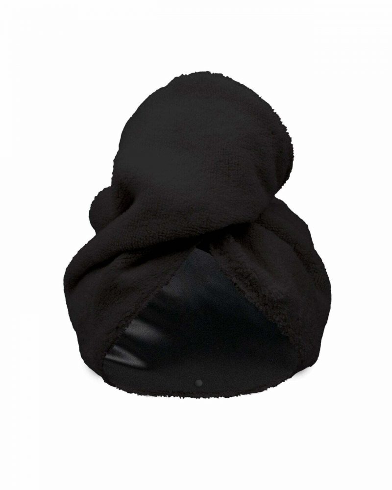 • Evenly distribute the material over the head and twist the towel into a spiral.Fit the towel using the button on the back of the towel.