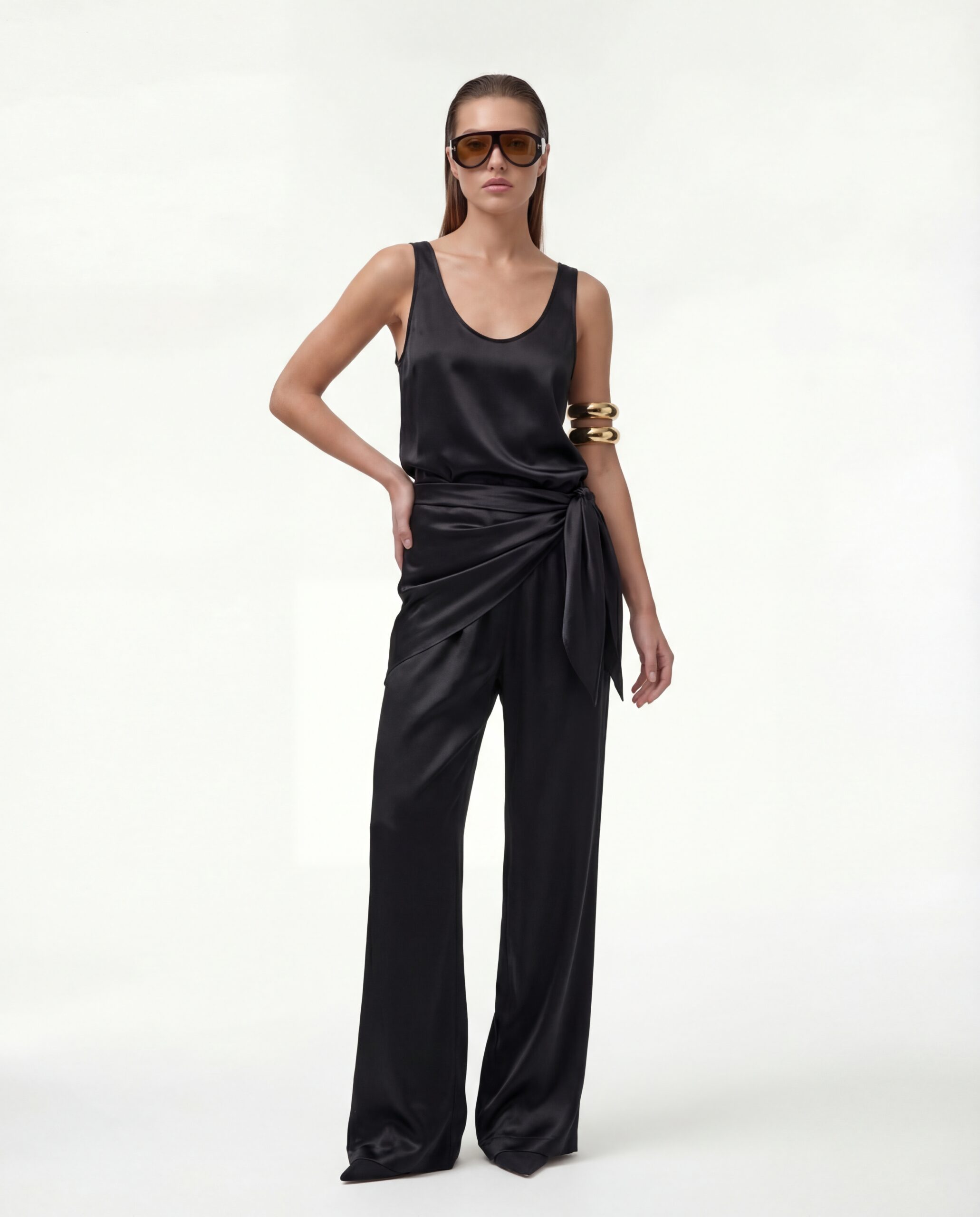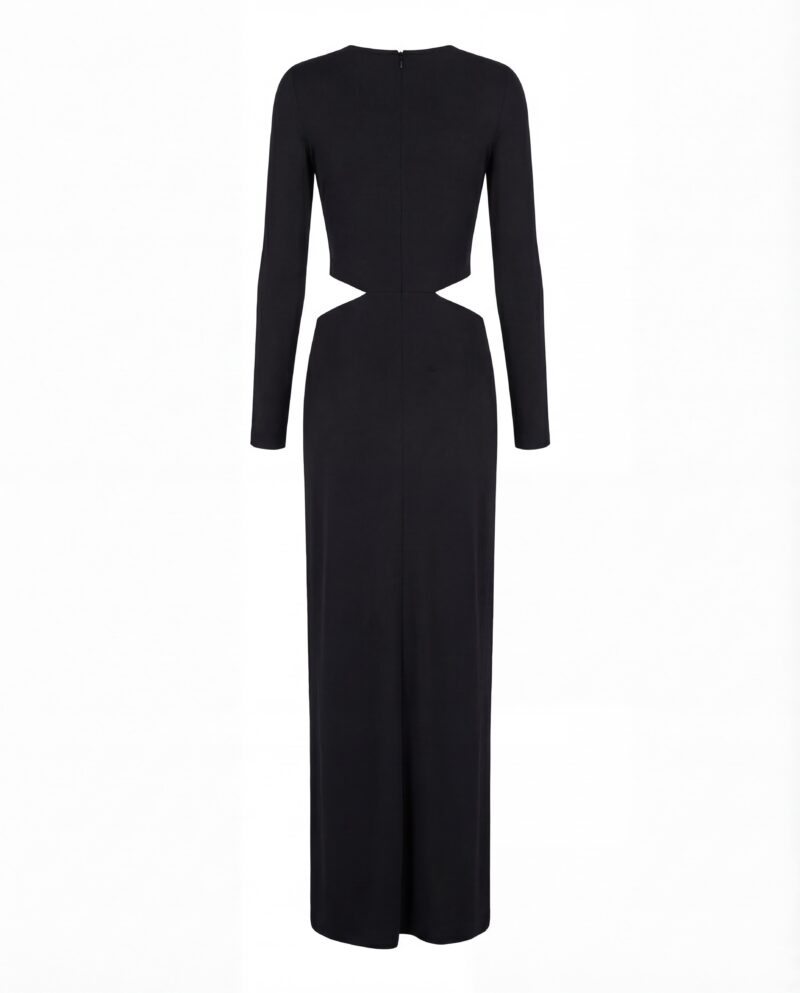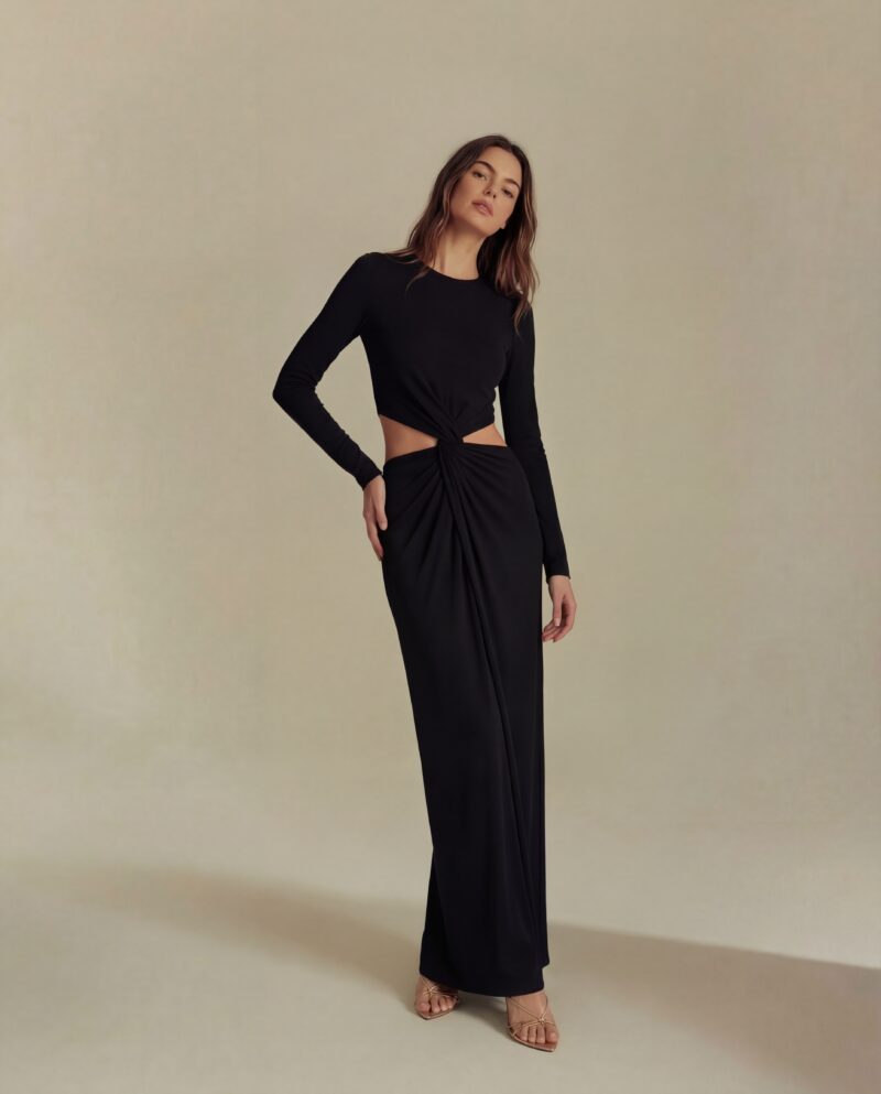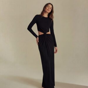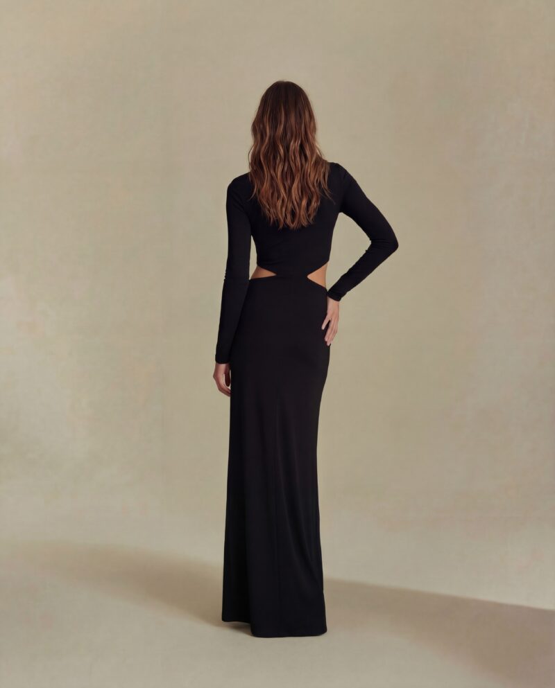 The Fame dress is a tribute to minimalist elegance and extraordinary comfort. Crafted from unique, elastic silk knit, it fits the silhouette perfectly, hugging it like a second skin. The deep black color and the noble, matte sheen of the fabric lend it a luxurious character. The maxi-length design with a striking leg slit combines sensuality with modern style. This model is incredibly versatile – perfect both with evening stilettos and heavier casual boots. Experience the lightness and quality conjured for you by our seamstresses in our Wrocław studio.