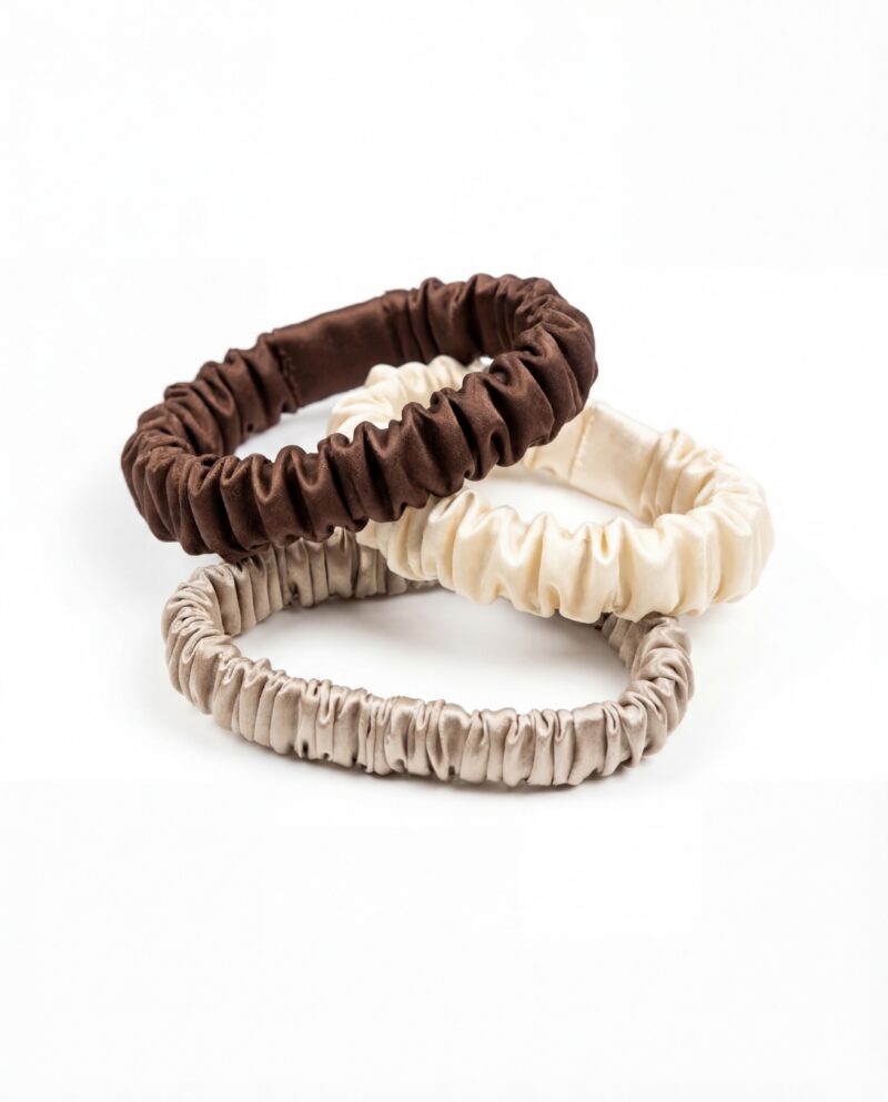 Zestaw jedwabnych gumek mini – czarna, ecru, szampańska (Kopia)